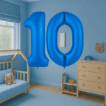 Balon cifră 10 din folie metalizată, culoare albastru intens – ideal pentru aniversări, petreceri tematice sau decorarea camerei copilului. Balonul este realizat din material rezistent, poate fi umflat cu aer sau heliu și asigură un efect spectaculos în orice decor. Dimensiune: 40″ (102 cm)