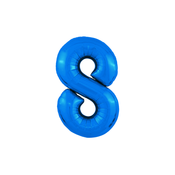 Balon cifră 8 din folie metalizată, culoare albastru intens – perfect pentru aniversări, petreceri tematice sau decoruri elegante. Realizat din material rezistent, se poate umfla cu aer sau heliu. Dimensiune: 40″ (102 cm). Ideal pentru a marca cea de-a opta aniversare sau pentru a fi combinat cu alte cifre și a crea decoruri spectaculoase