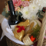 Coș cadou de Paște bogat, ce combină flori proaspete cu dulciuri fine și vin select, într-o prezentare elegantă. Decorat cu detalii tematice și accente jucăușe, este cadoul ideal pentru a aduce bucurie și rafinament.
