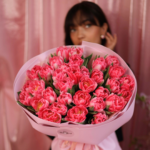 Un buchet din lalele roz tip bujor, simbol al iubirii, tandreții și eleganței. Perfect pentru a surprinde persoana iubită de Sfântul Valentin, acest aranjament impresionează prin volum bogat, culoare delicată și un ambalaj premium în nuanțe romantice. O alegere ideală pentru momente speciale și declarații de dragoste memorabile.